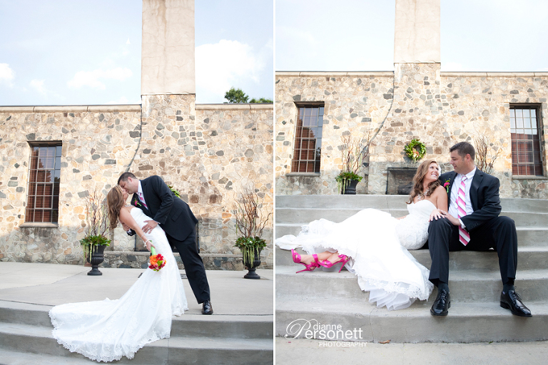 I love everything about this wedding. I really love all the pictures on the steps! What a fun cake too!