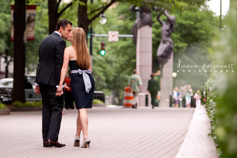 Uptown Charlotte and The Green engagement session | We are thrilled that Alley and Mark chose us for their engagement and wedding! Todd and I thoroughly enjoyed this session, and getting a small glimpse into their lives, relationship and their love for one another. They are both successful, intelligent, classy, and completely down to earth. As a couple, they were SO natural and comfortable with each other. We didn’t have to ask once for them to show us some emotion or expression, it all just came so naturally to them. It was really sweet to see the way they love each other. They each have their own fun-loving and creative ways of showing this. They honestly are just perfect for each other. Aren’t they just ridiculously cute?!